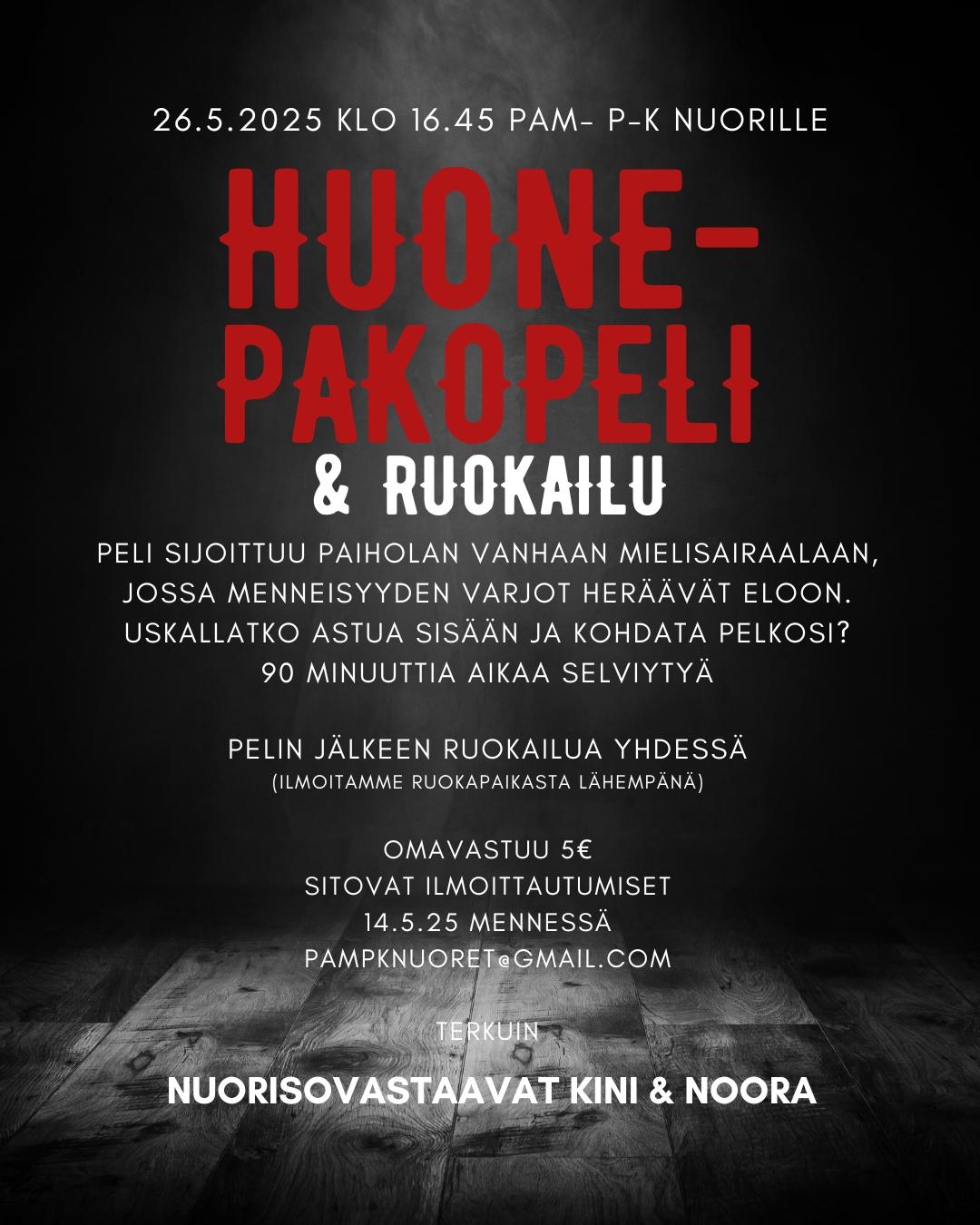 Jos vastasit KYLLĂ, niin ilmoittaudu mukaan HUONEPAKOPELIIN 26.5.2025 !!