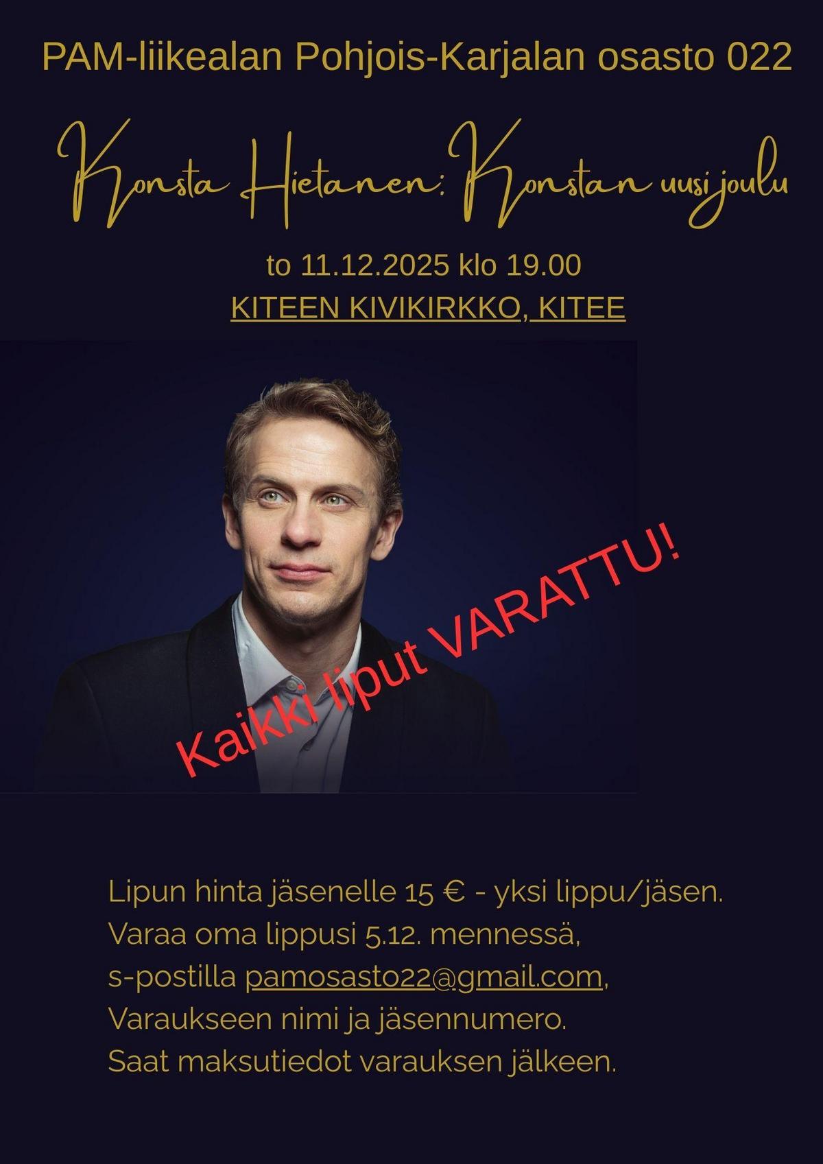 Lipun hinta jäsenelle 15 € - yksi lippu/jäsen.