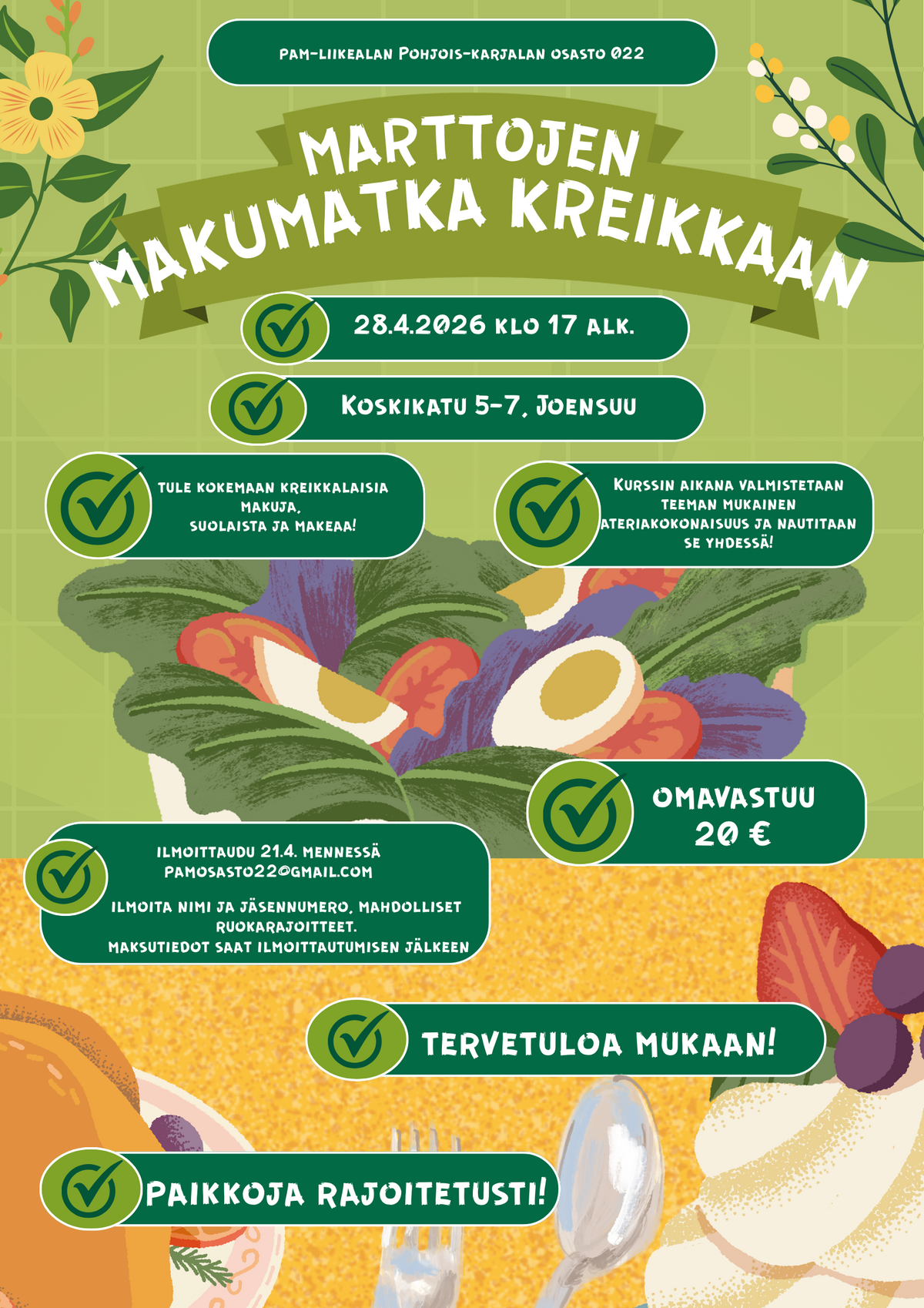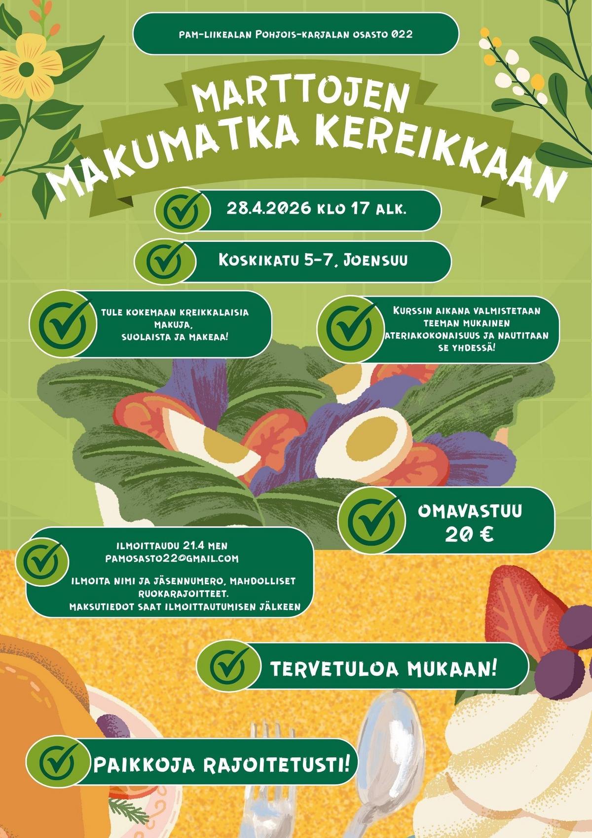 Ilmoittaudu 21.4 mennessä, pamosasto22@gmail.com
