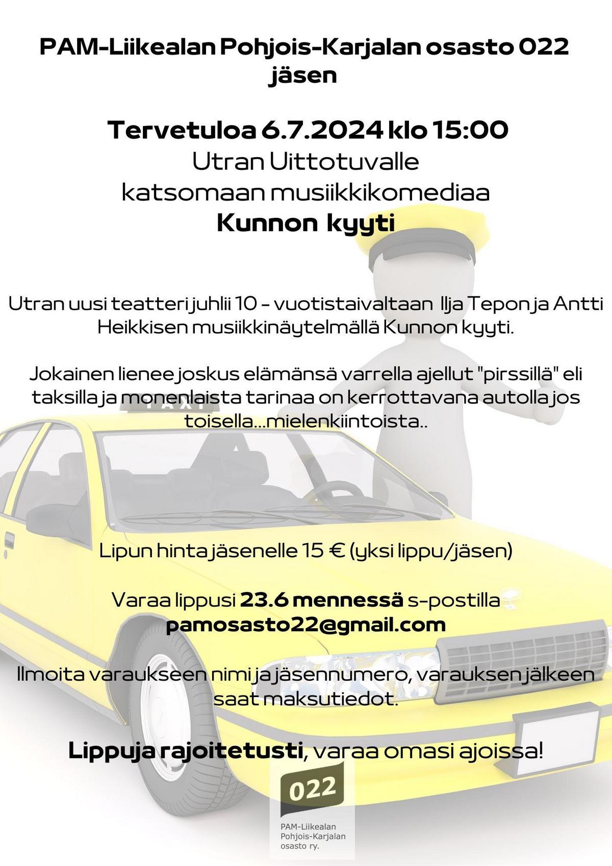 Utran Uittotuvalla 6.7 klo 15.00, esitettävään musiikkikomediaan Kunnon kyyti.
