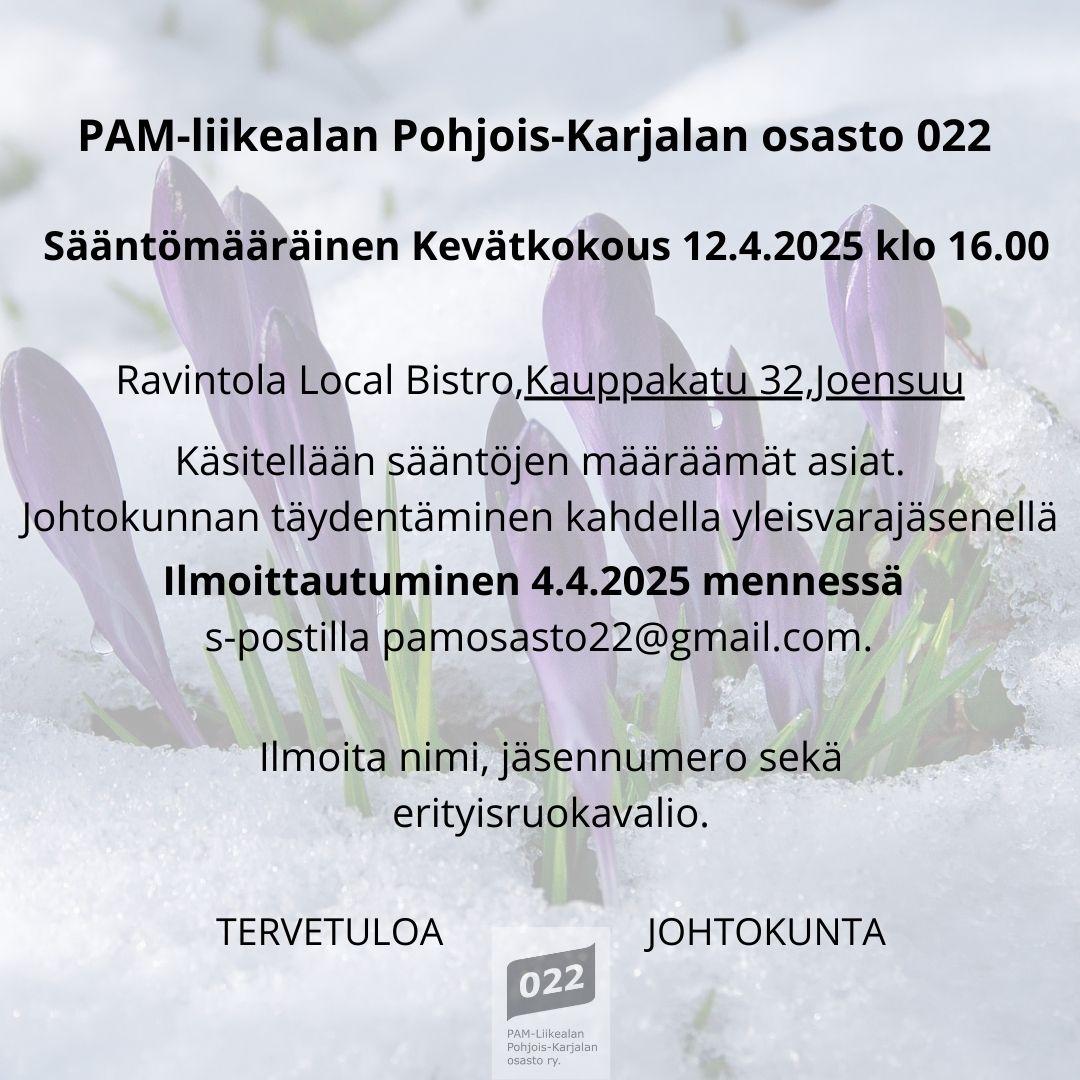 PAM-liikealan Pohjois-Karjalan osasto 022 Sääntömääräinen Kevätkokous,