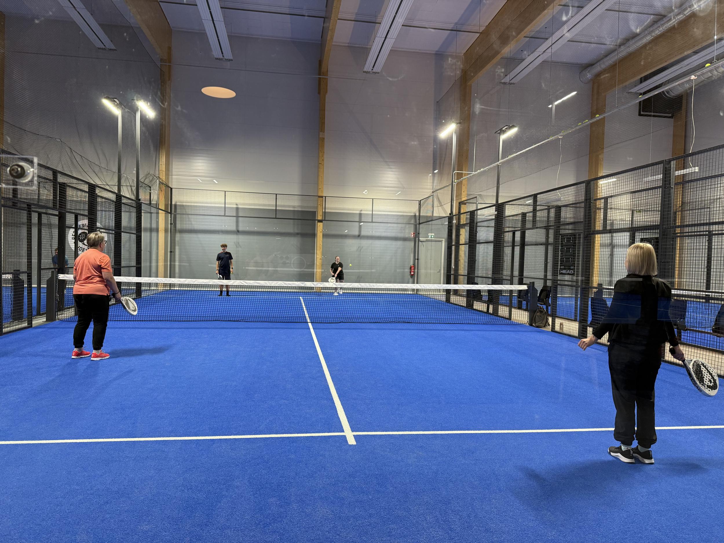 Ammattiosasto järjesti mahdollisuuden tutustua Padelin saloihin Lehmon Padelissa ohjaajan johdolla.