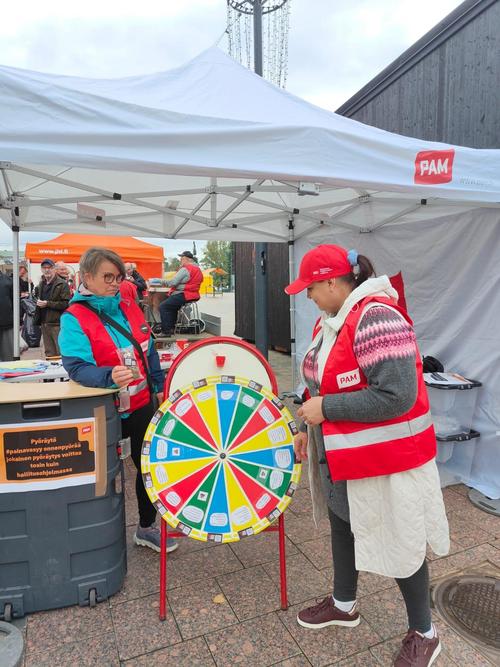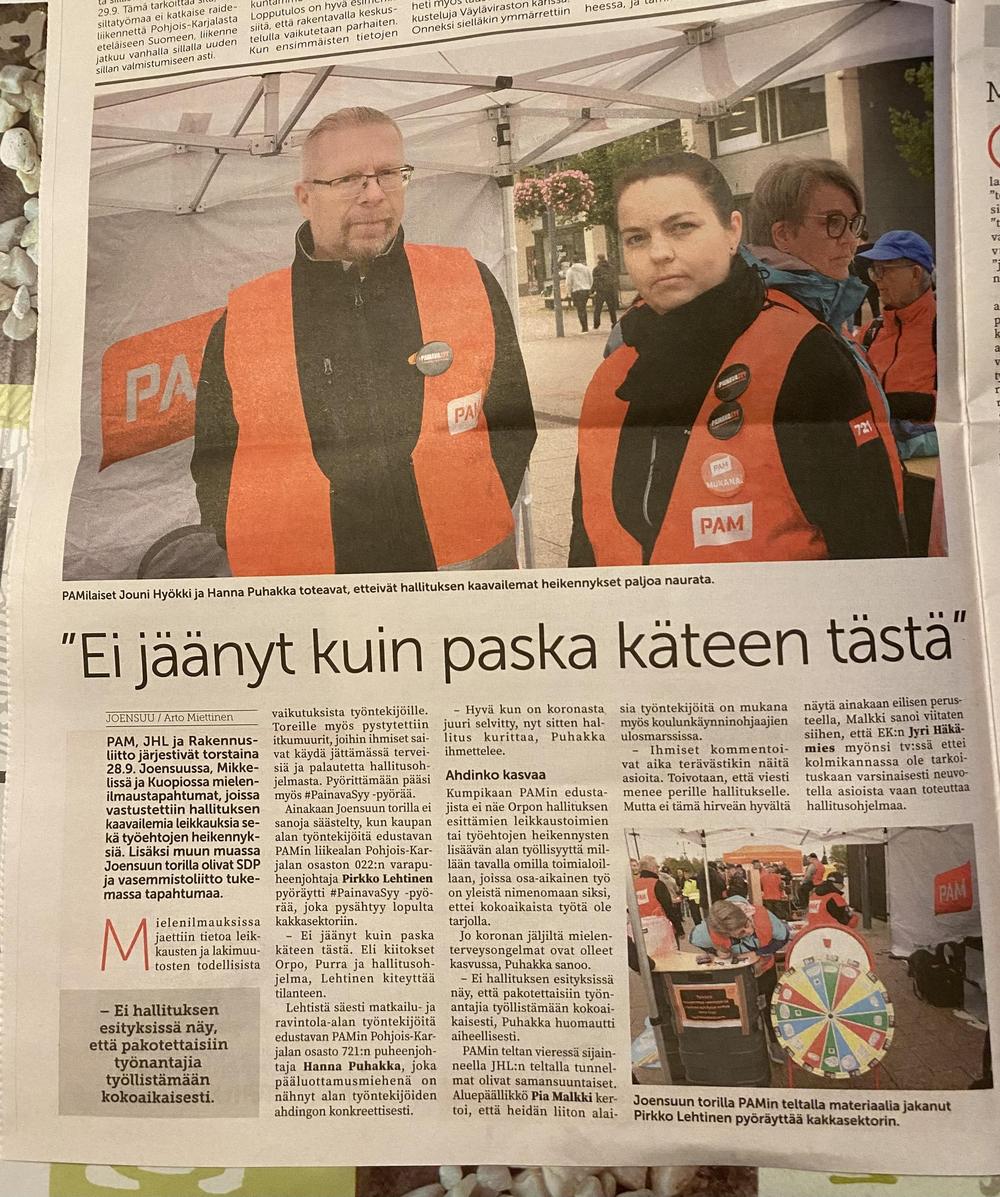 PAM - liikealan Pohjois-Karjalan ammattiosasto oli mukana #PAINAVASYY - mielenilmaisussa, Joensuun torilla 28.9.2023, yhdessä PAM 721, JHL ja Rakennusliiton kanssa. Mielenilmaisutapahtumalla vastustettiin hallituksen kaavailemia leikkauksia sekä työehtojen heikennyksiä.