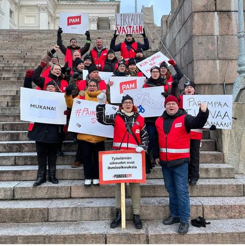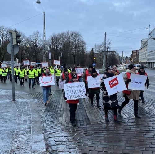 SAK.n edustajisto marssi hallituksen toimia vastaan 24.11.2023 Helsingissä. Mukana myös PAM!